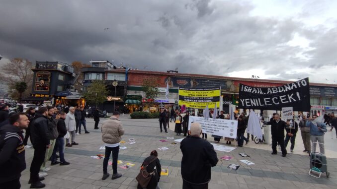 Eylem boyunca “Katil İsrail Filistin’den Defol, Yaşasın Gazze Direnişimiz, Yaşasın Küresel İntifada, Katil ABD Ortadoğu’dan Defol, İşbirlikçi Rejimler Hesap Verecek, Soykırıma Değil Direnişe Destek Ol, BM Terör Örgütü, BM Kararı İşgal Yasası, İsrail’le Ticaret Filistin’e İhanet, Direniş Sürüyor İntifada Büyüyor“ sloganlarını attık, tekbir getirdik.